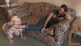 Sep 3 - Fun with friends part 2. Mistress Eve invites two of her friends over as all three ladies smother the slave with their feet. It's 3 against one now!