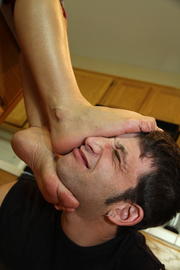 Jan 6 - Mistress Eve smothers and smooshes this foot lovers face while he is worshiping her feet.