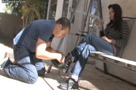 Feb 21 - Handyman is taking care of my dirty old boots, then licks my socks and then takes them off and worships my feet